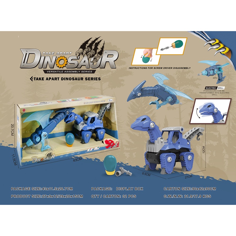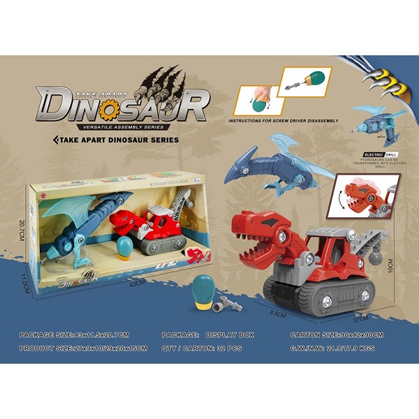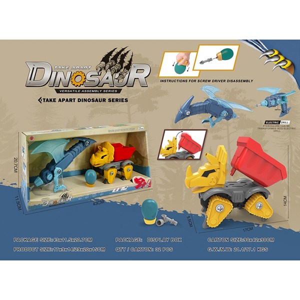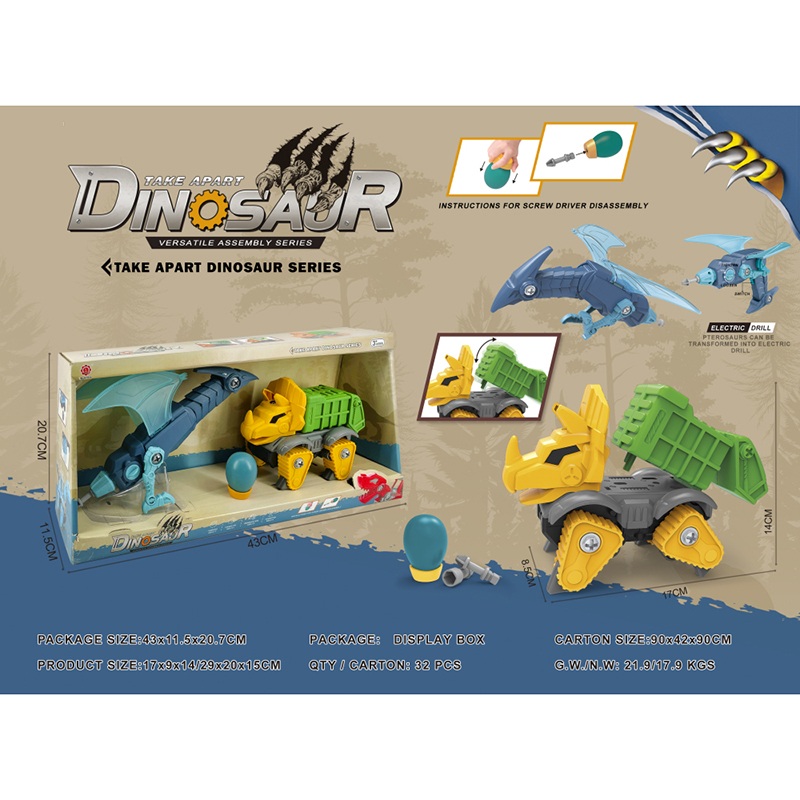 滑行功能+声音DIY三角龙翻斗车+翼龙变形电钻(电钻不包2*AA) |