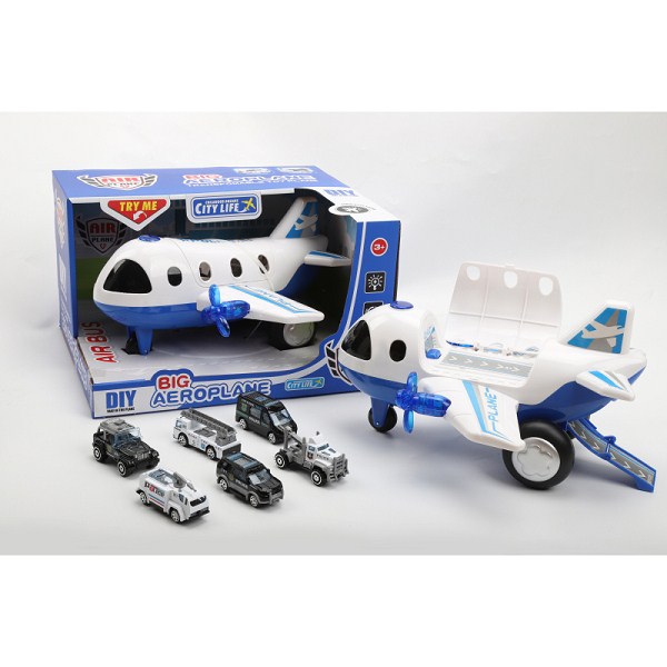 警察收纳客机(蓝)配2只合金车(英文IC) |