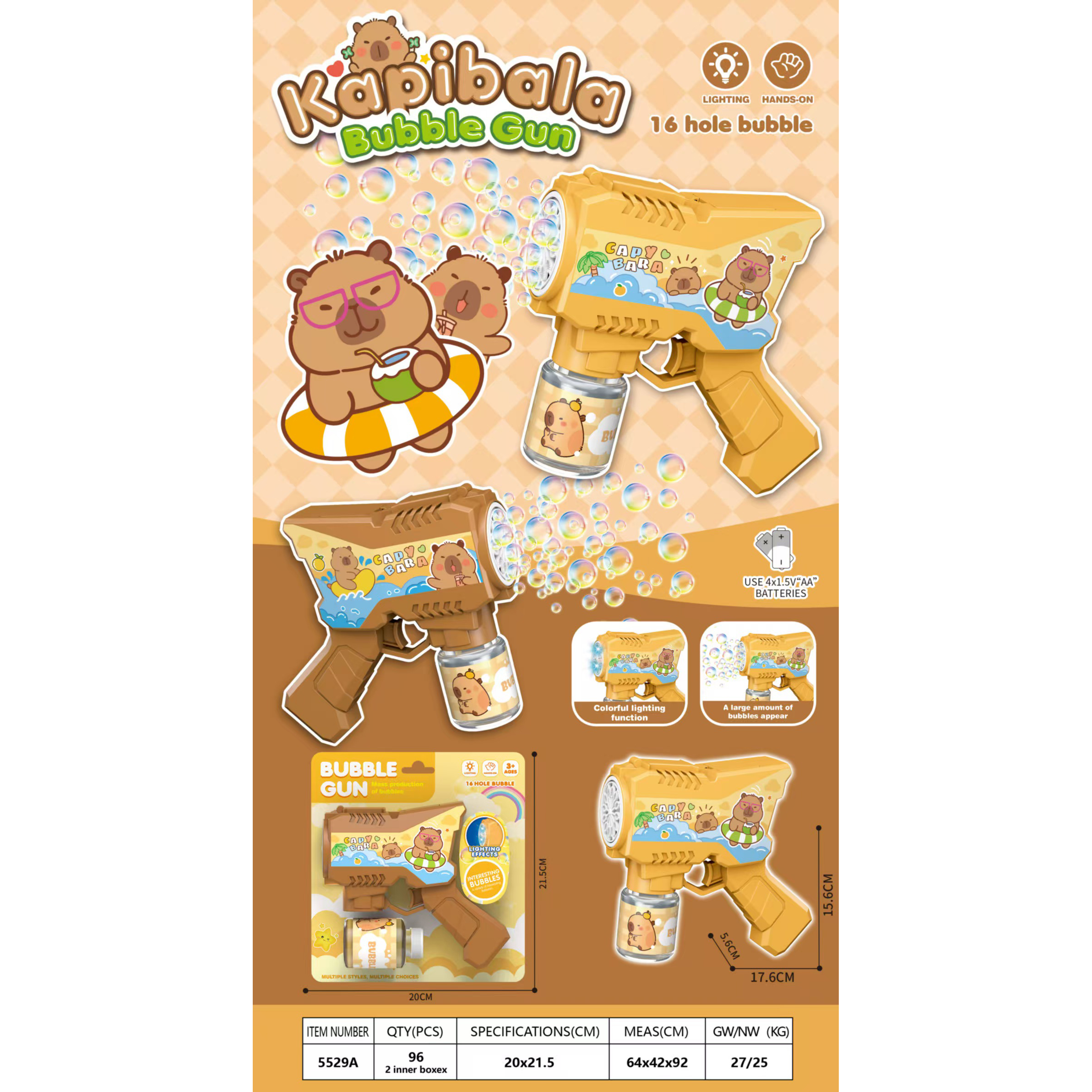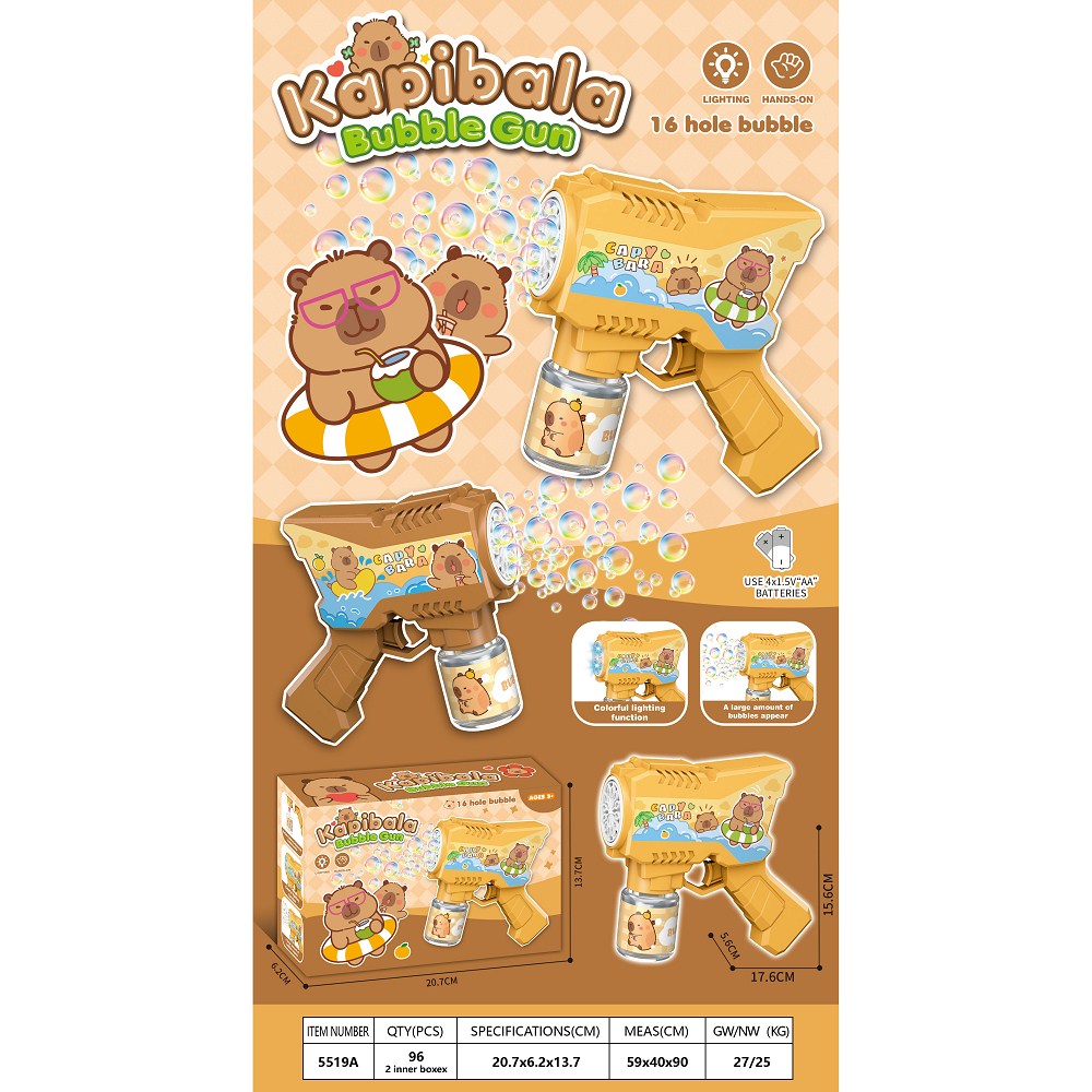 炫酷电动卡皮巴拉泡泡枪(带灯光)2色混装 |