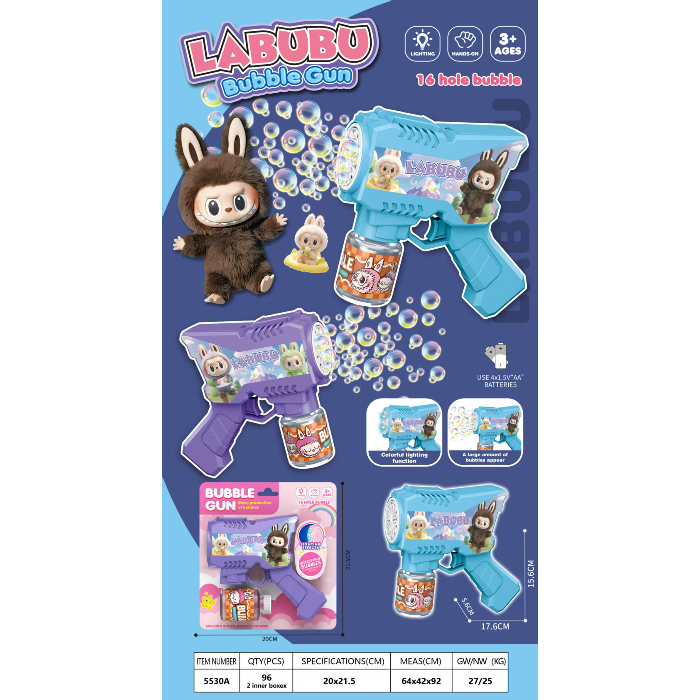 炫酷电动啦布布泡泡枪(带灯光)2色混装 |