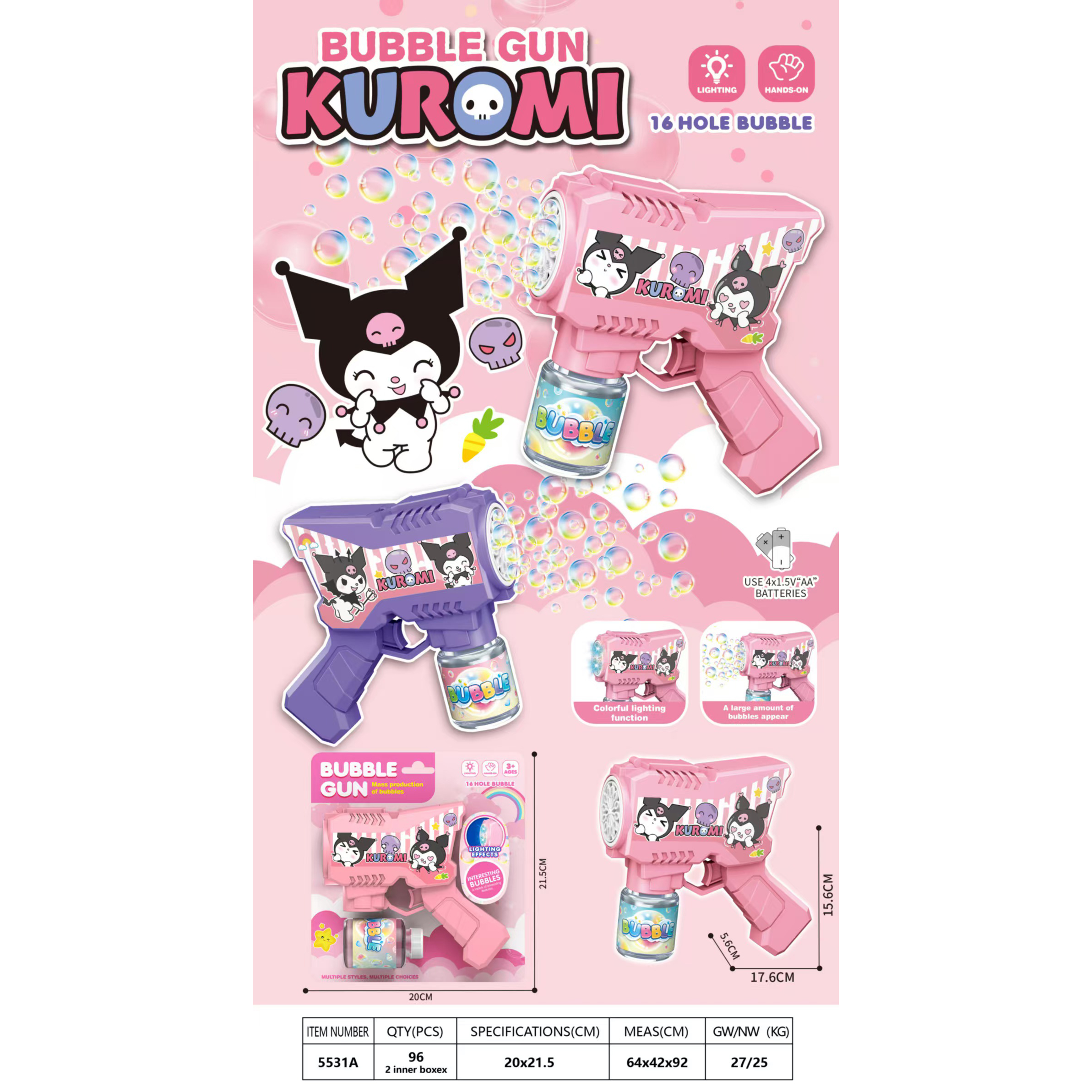炫酷电动库洛米泡泡枪(带灯光)2色混装 |
