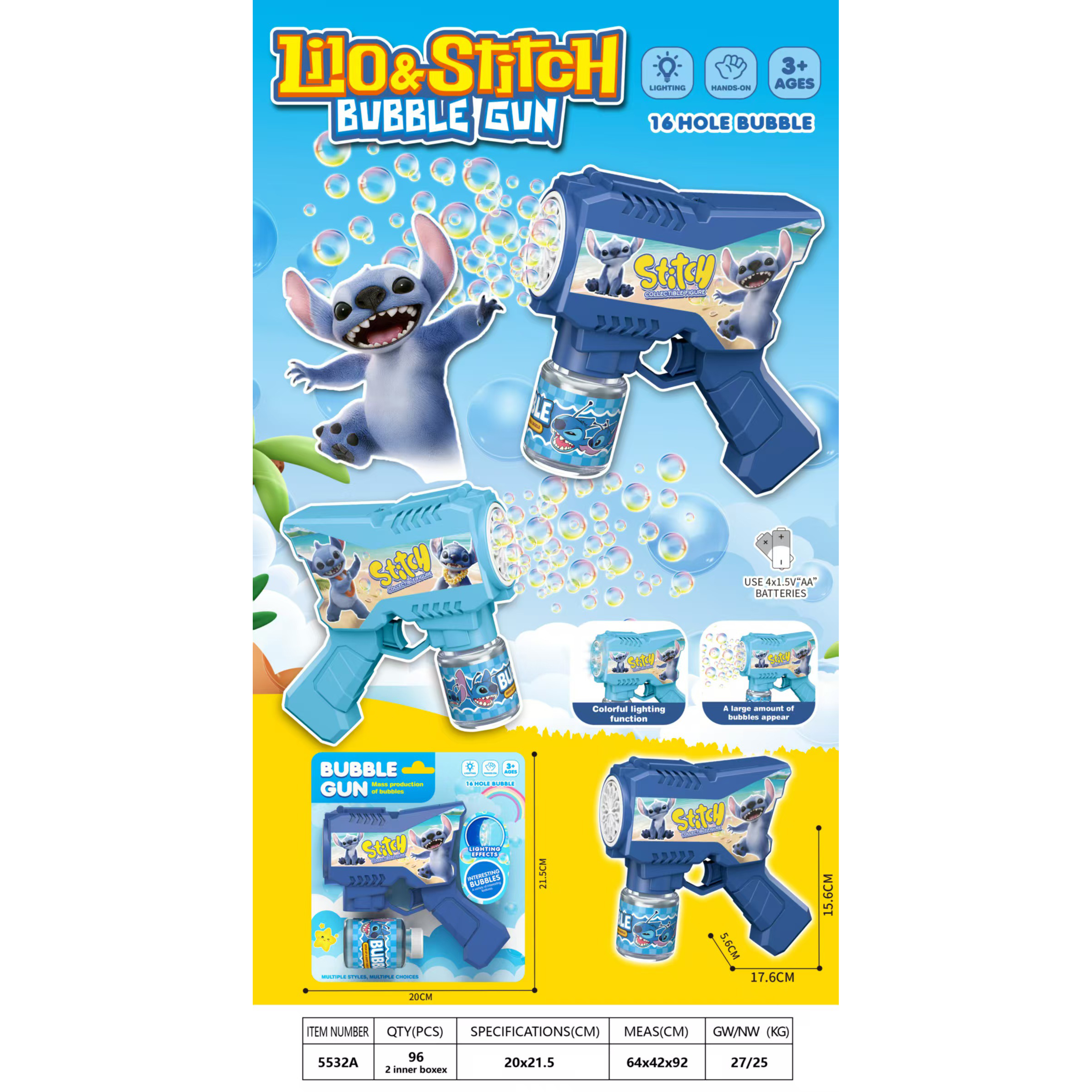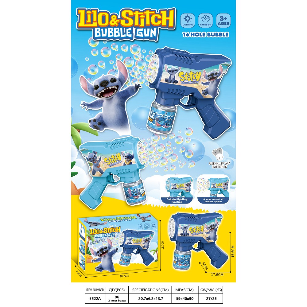 炫酷电动史迪仔泡泡枪(带灯光)2色混装 |