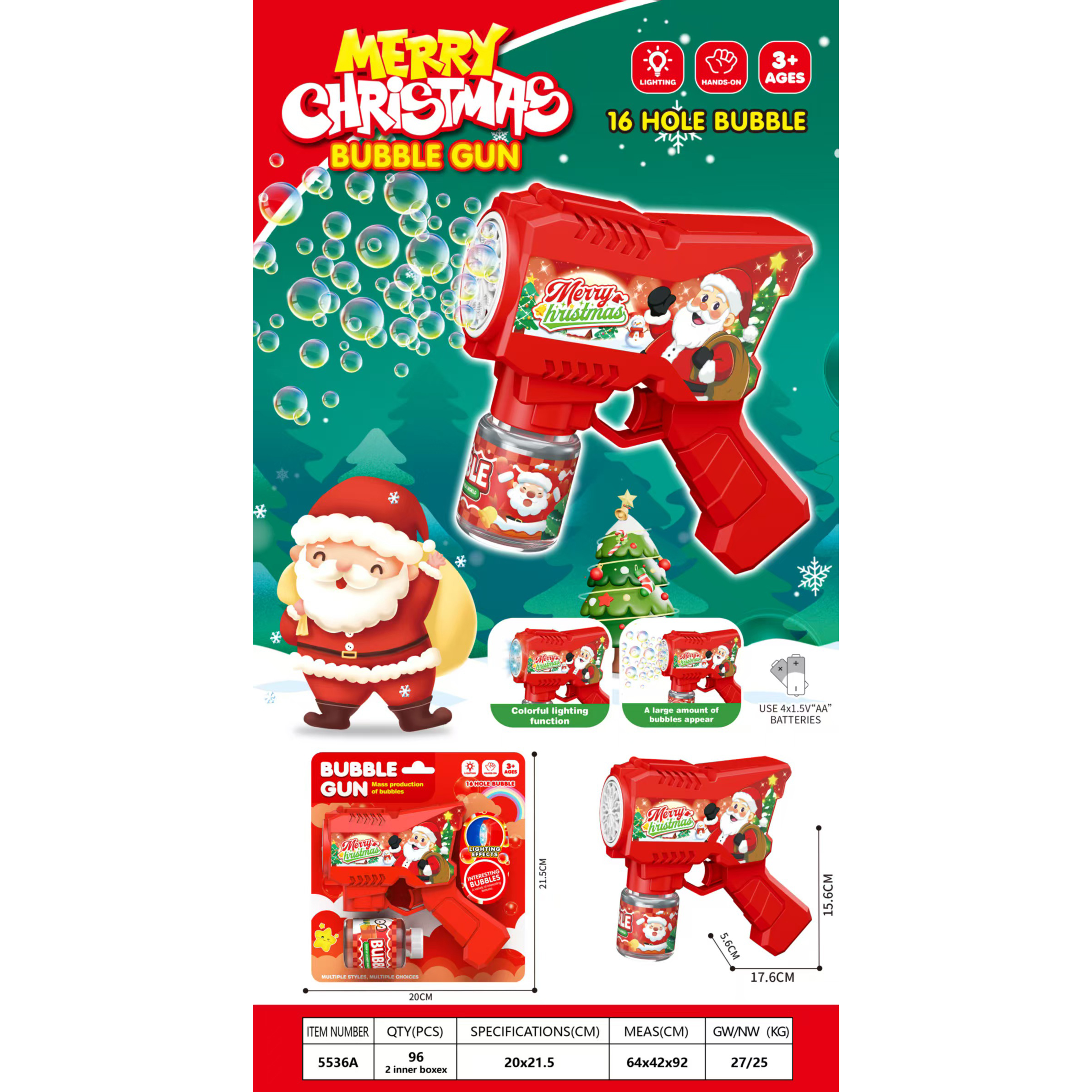 炫酷电动圣诞老人泡泡枪(带灯光) |