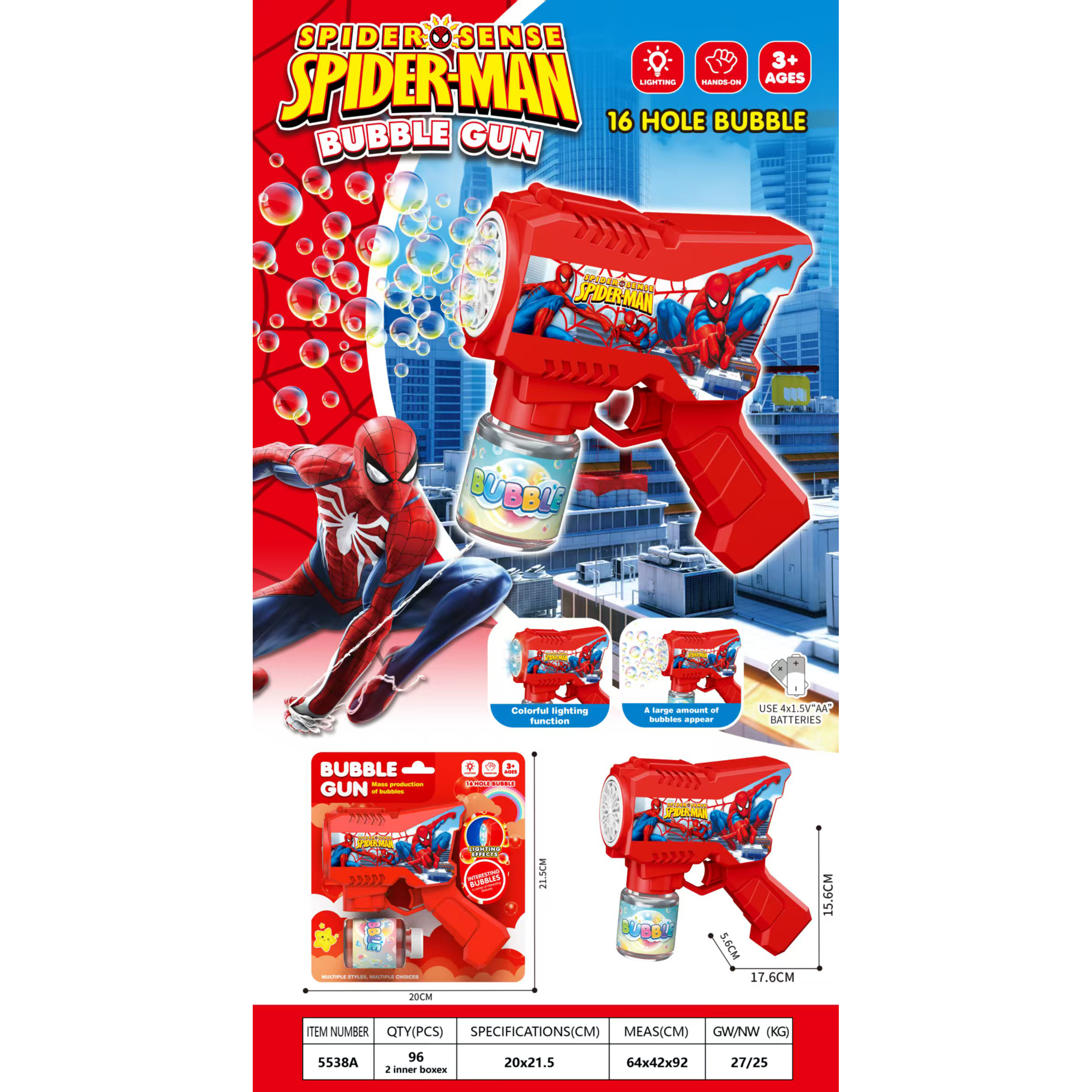 炫酷电动蜘蛛人泡泡枪(带灯光) |