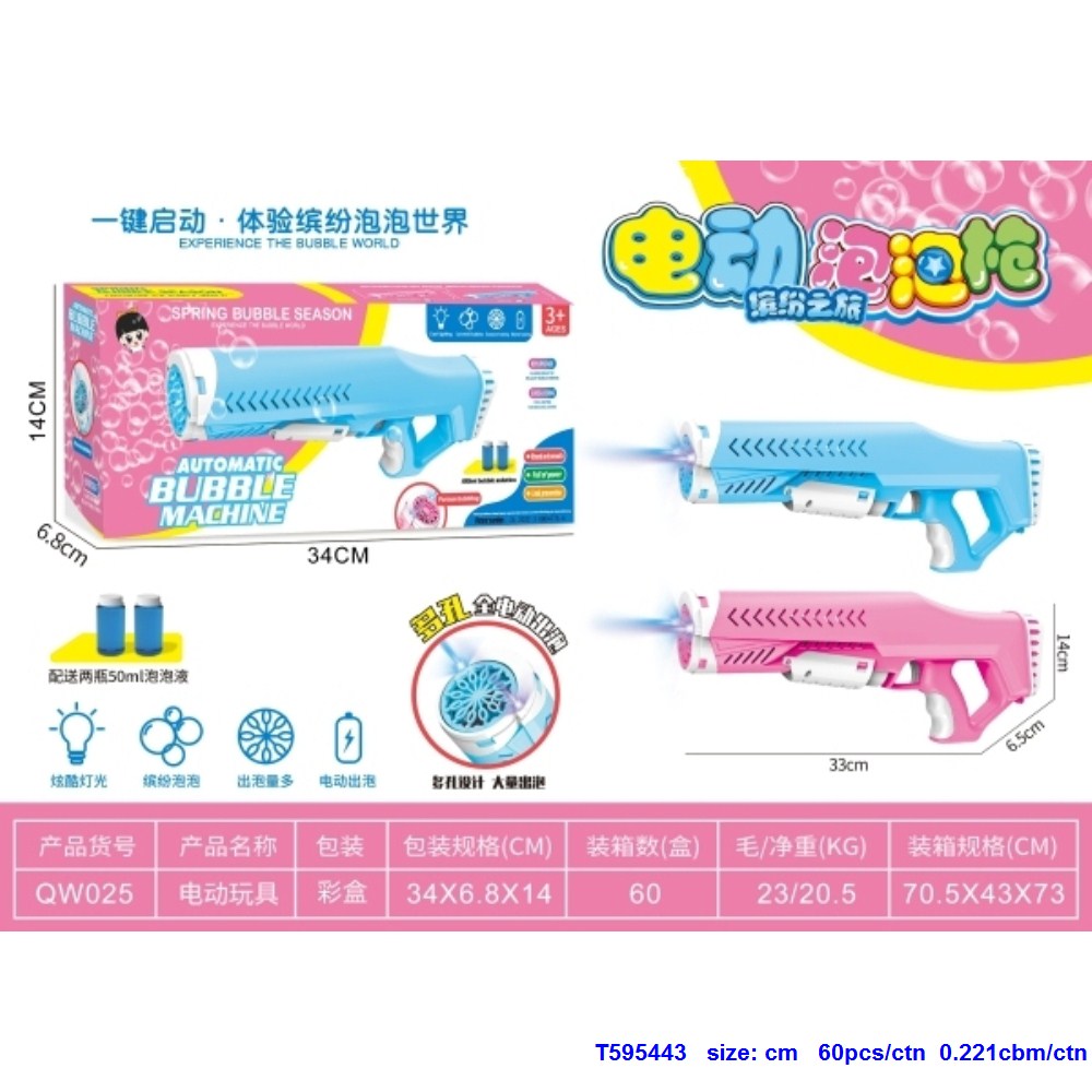 电动灯光泡泡枪 粉蓝/粉红混装 |