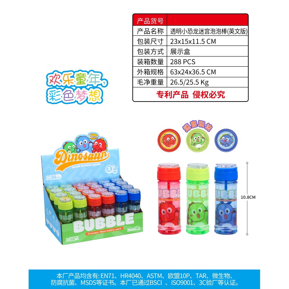 透明小恐龙迷宫泡泡棒一盒24PCS65ml |