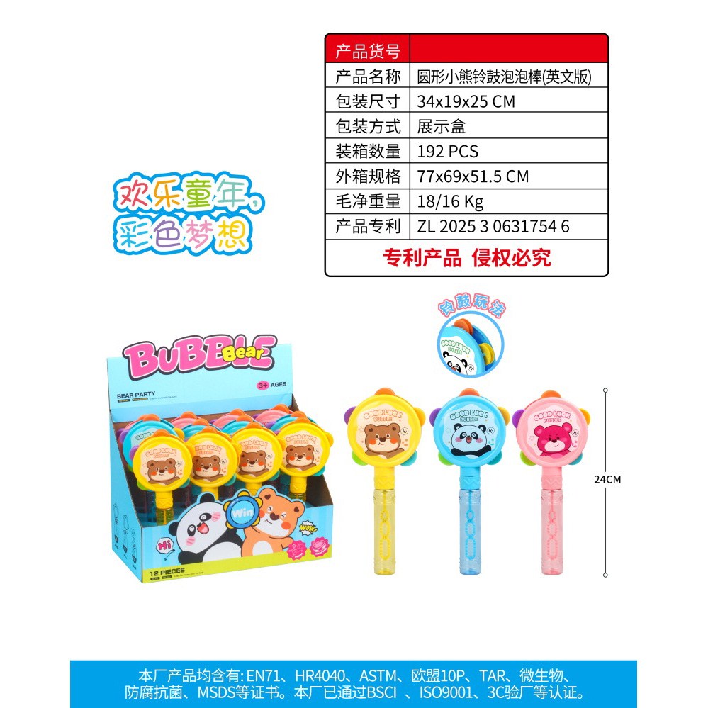 圆形小熊铃鼓泡泡棒 一盒12PCS 55ml |