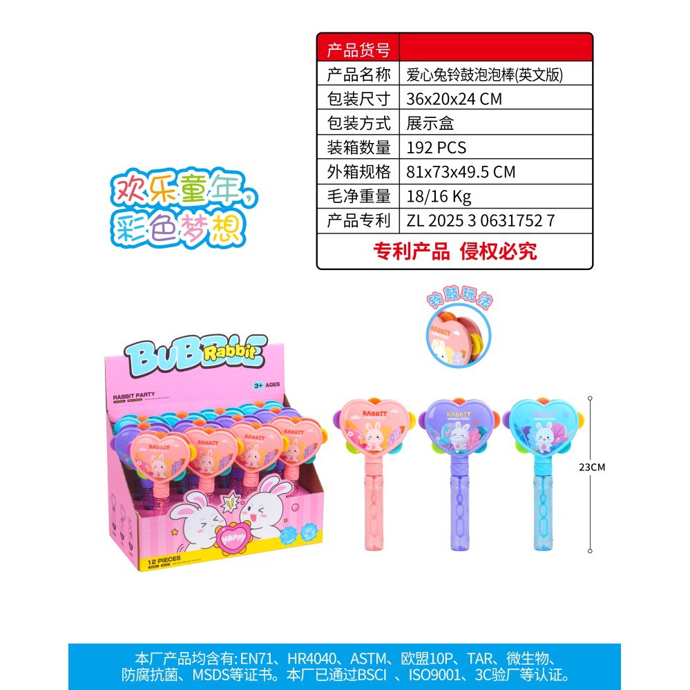 爱心兔铃鼓泡泡棒 一盒12PCS 55ml |