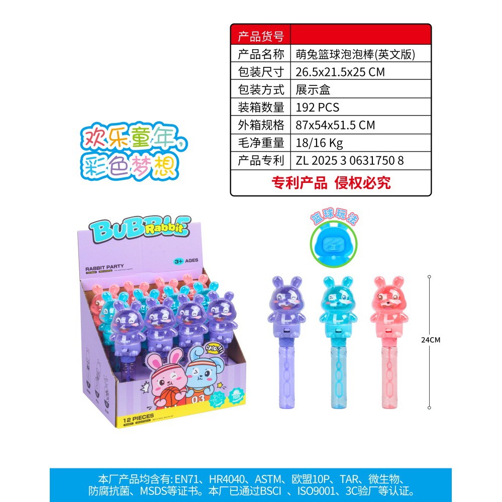 萌兔篮球泡泡棒 一盒12PCS 55ml |