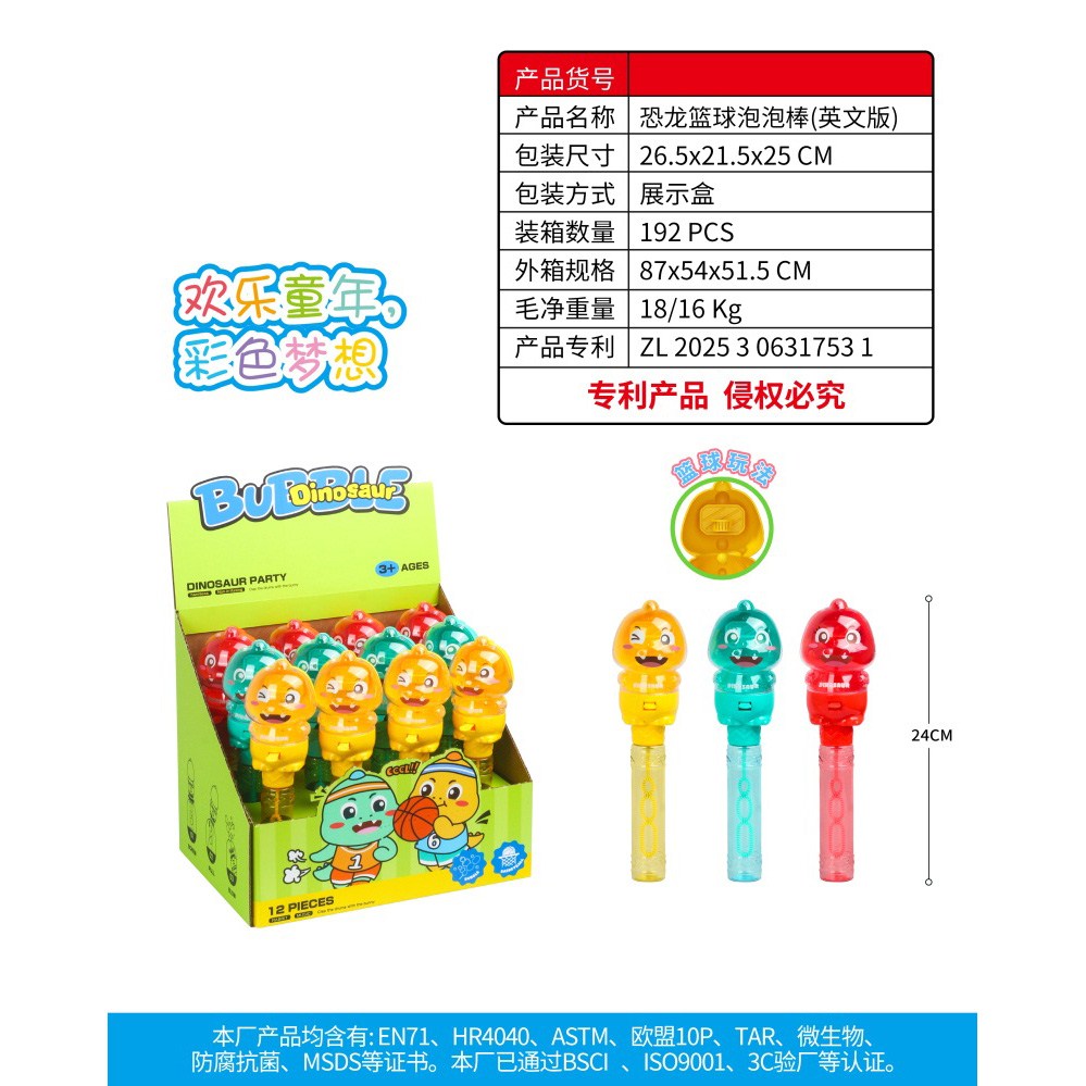 恐龙篮球泡泡棒 一盒12PCS 55ml |