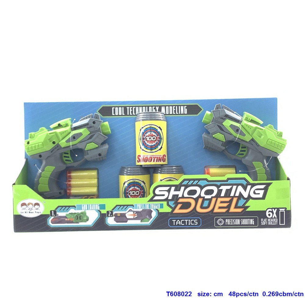 (GCC)两只装单孔手动软弹枪配6粒软弹、三个标靶饮料瓶(两色混装,枪把可装糖) |