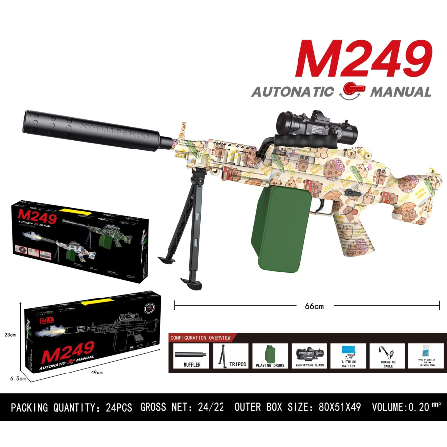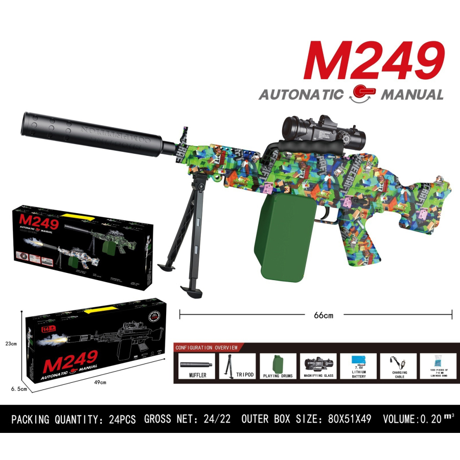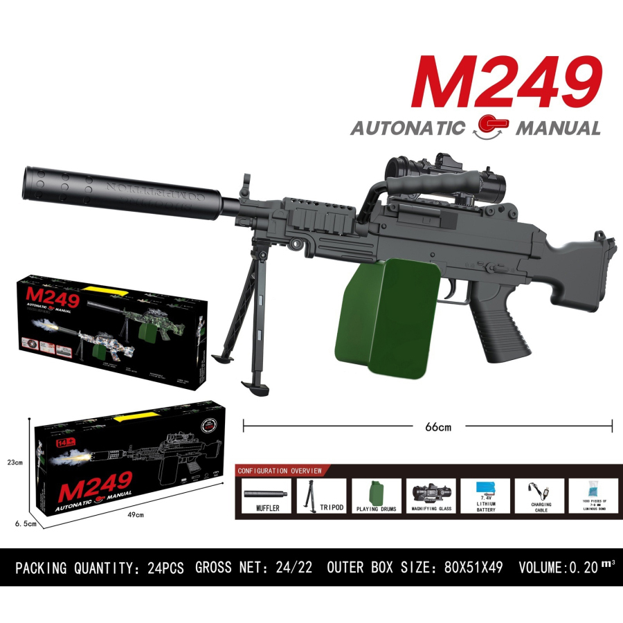 M249手自一体水弹枪(电动连发+手动单发) |