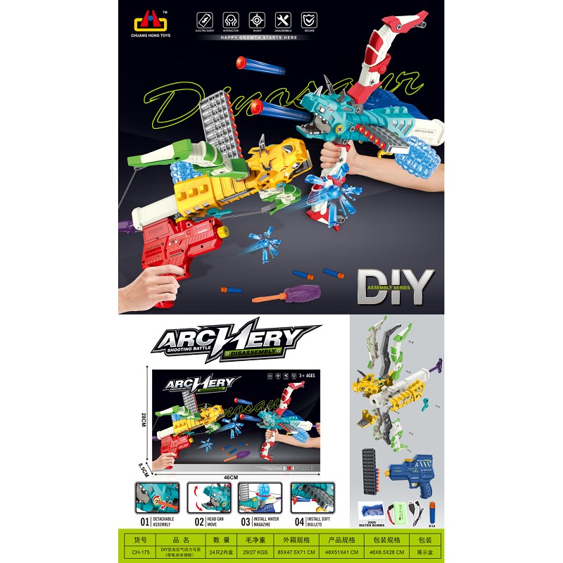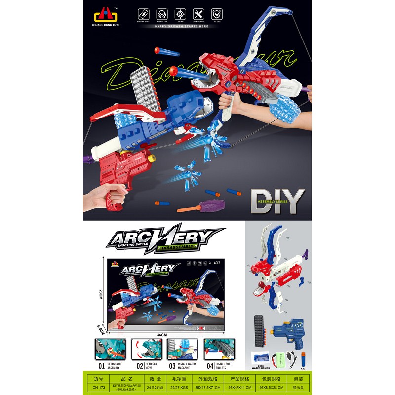 DIY恐龙空气动力弓箭(带电动水弹) |
