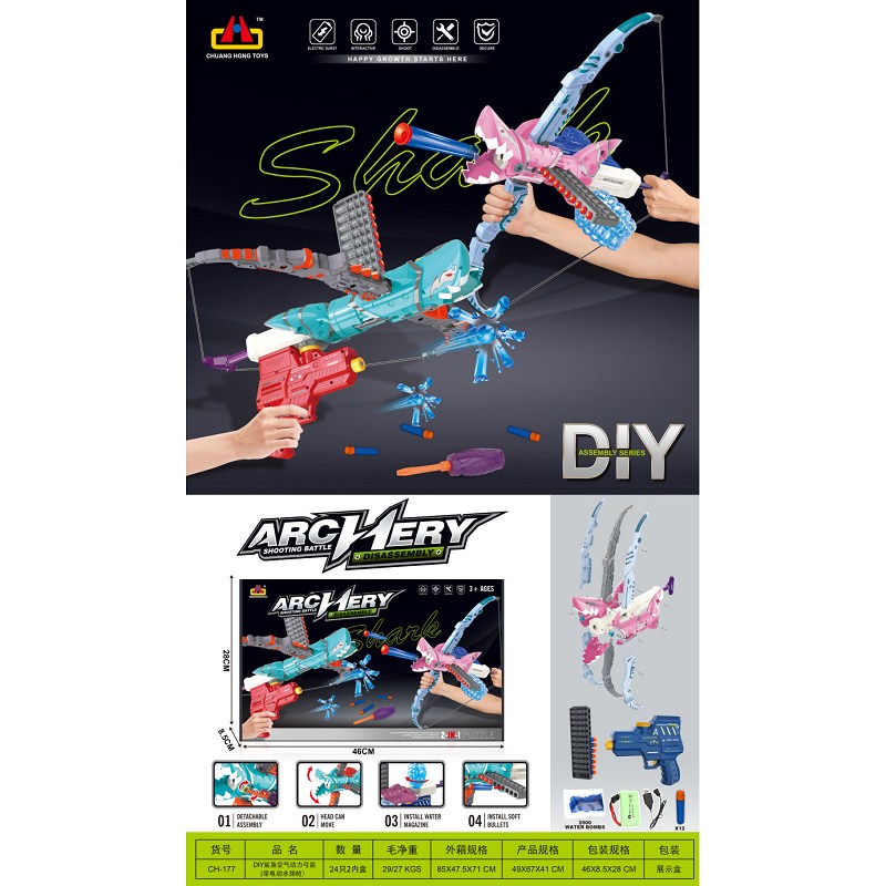DIY鲨鱼空气动力弓箭(带电动水弹) |