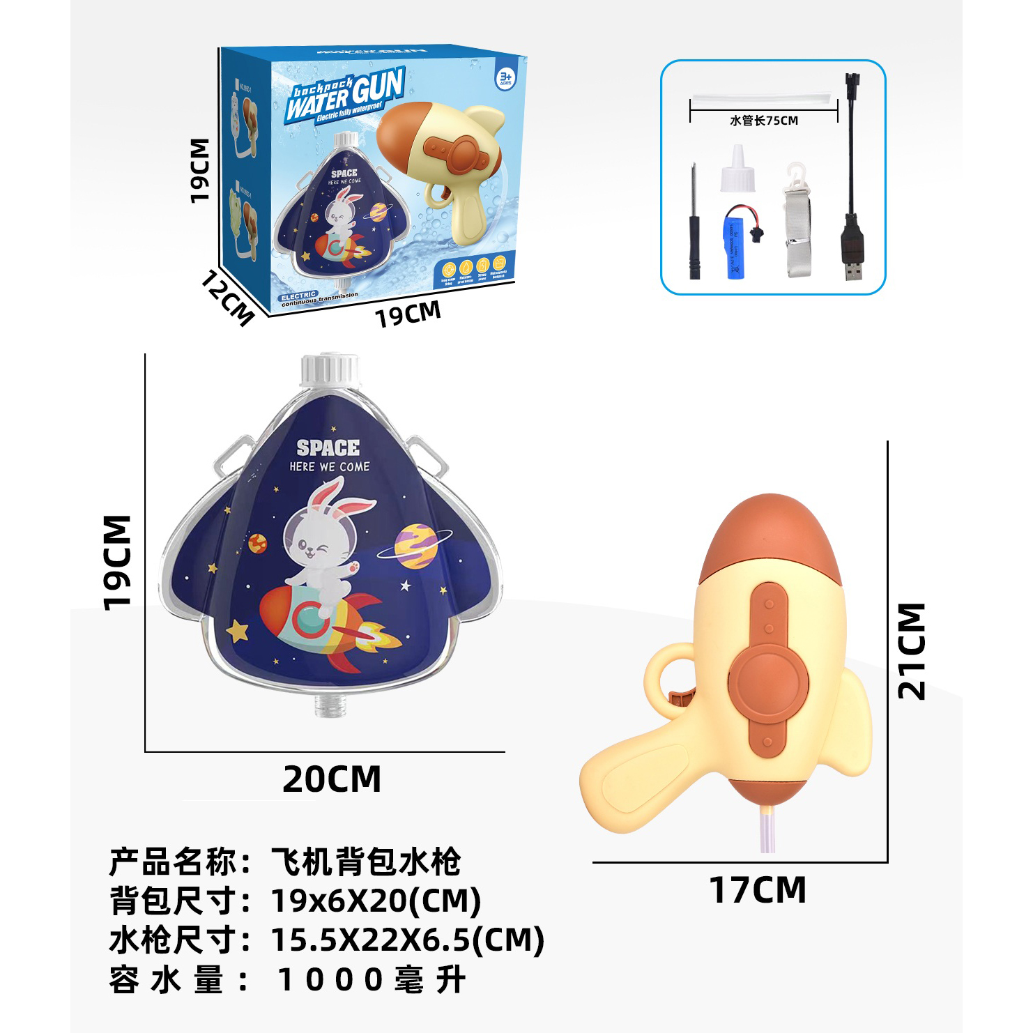 背包水枪1000ml |