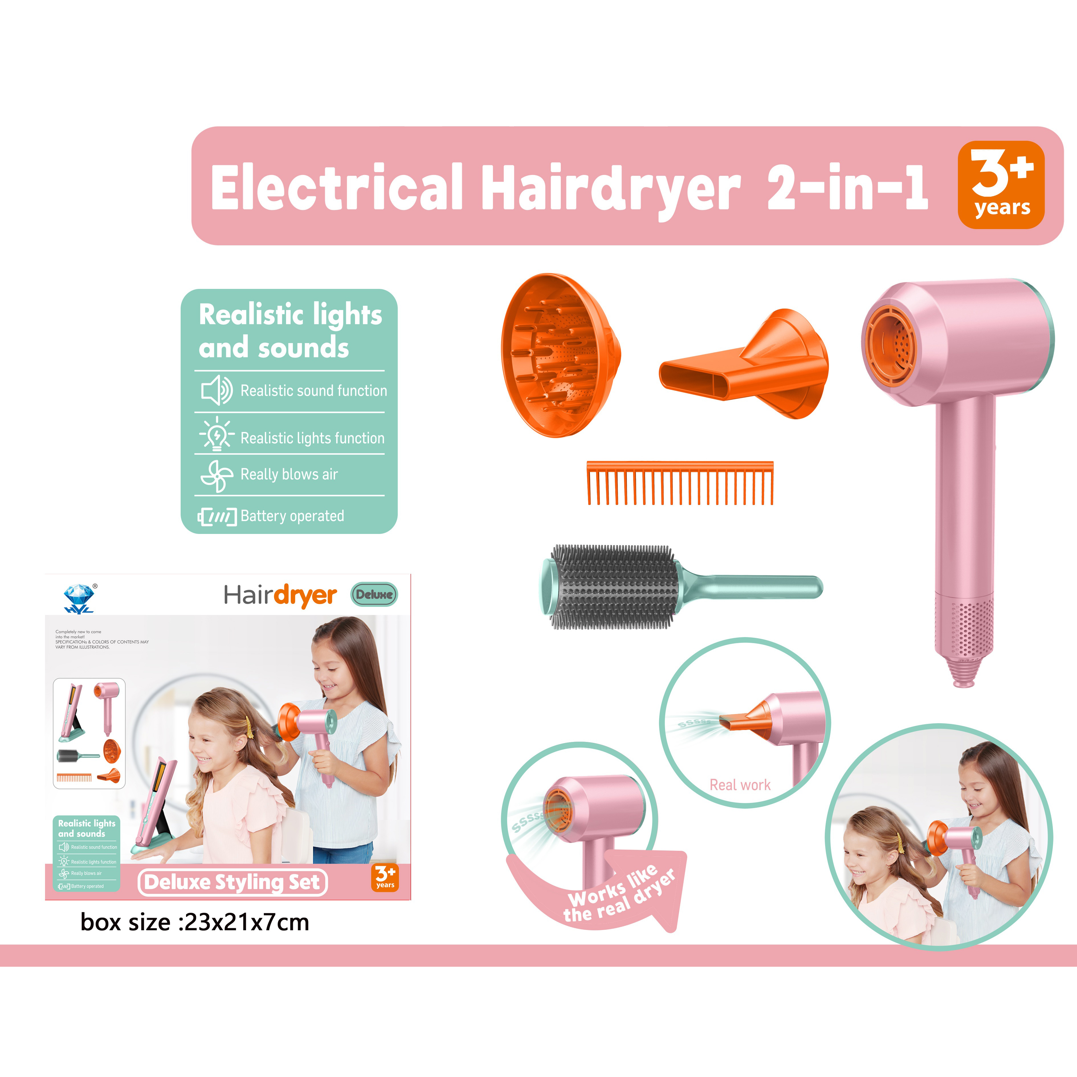 梳妆套装电动吹风筒夹板(灯光声音) 吹风筒和夹板各2AA不包 |