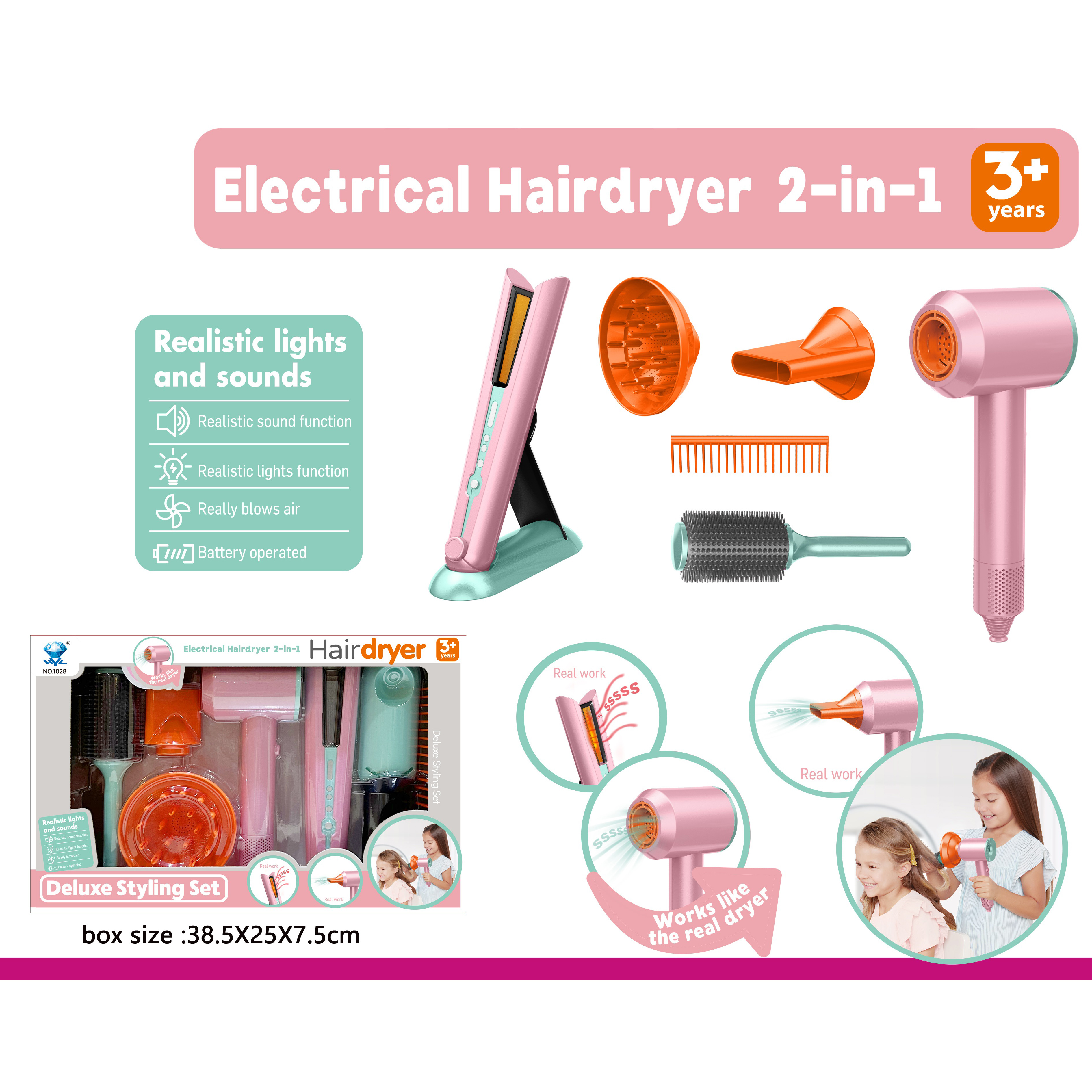 梳妆套装电动吹风筒夹板(灯光声音) 吹风筒和夹板各2AA不包 |