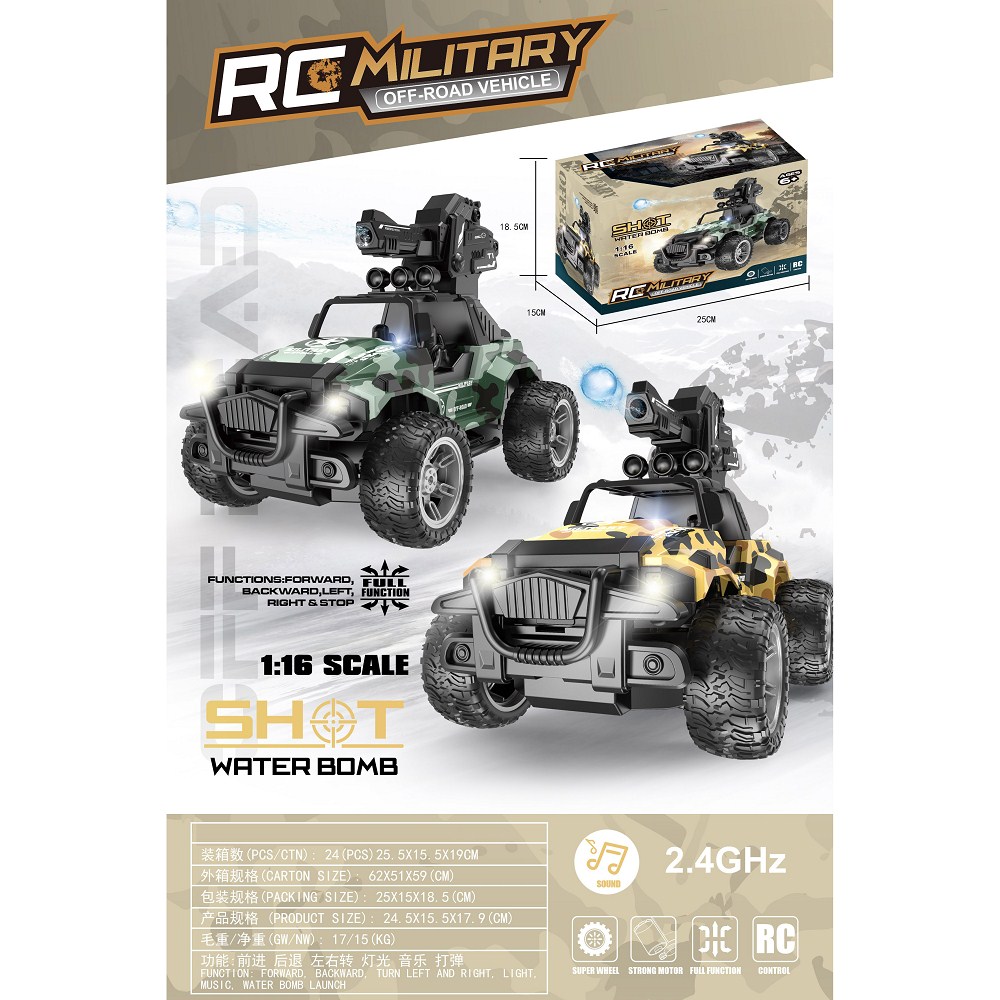 牧马人军事迷彩六通打水弹遥控车带声音灯光(2.4G,包锂电) |