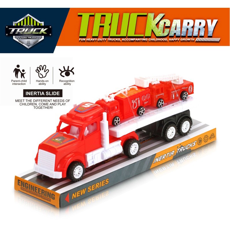 惯性美式拖头车带两辆消防车 |