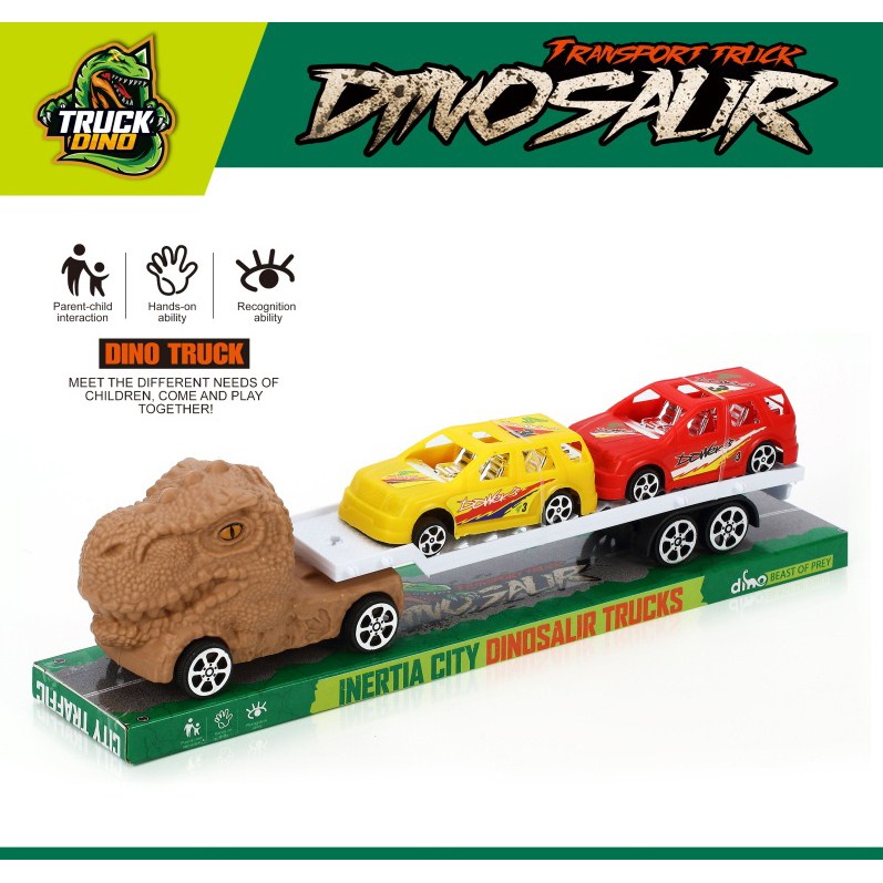 惯性恐龙拖头车带2辆滑行大赛车 |