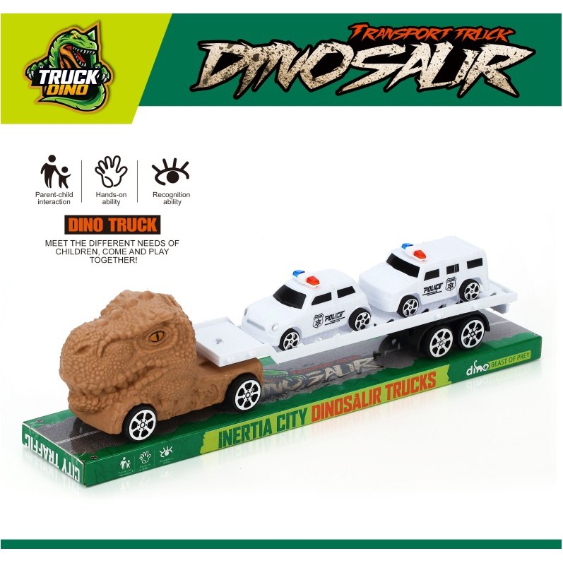 惯性恐龙拖头车带2辆滑行警车 |