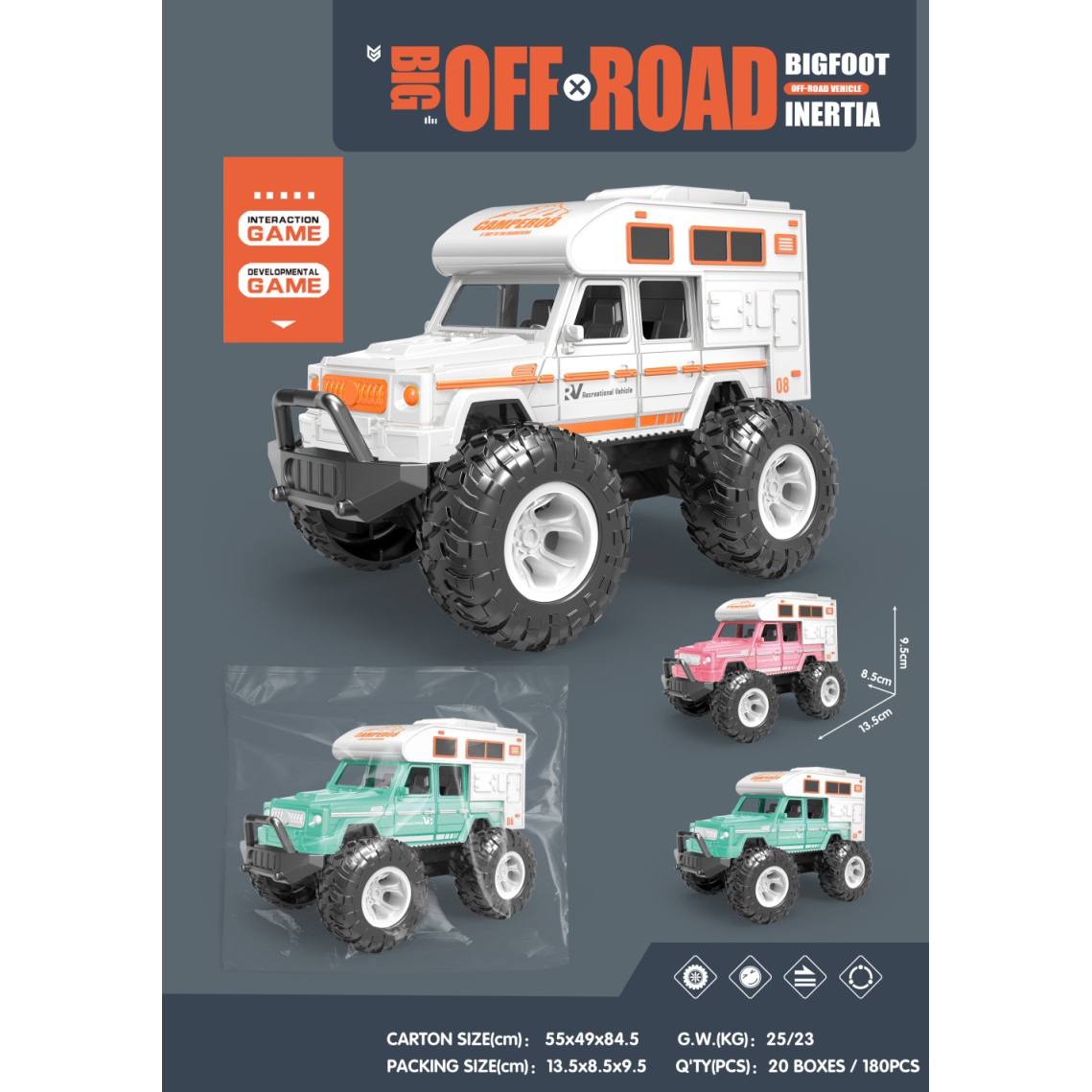 房车,惯性车大脚车,三色混装,9PCS/盒 |