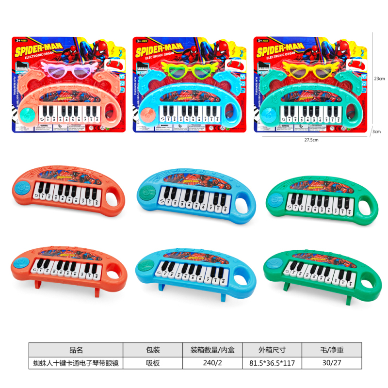 蜘蛛人十键卡通电子琴带眼镜,3色混装 |