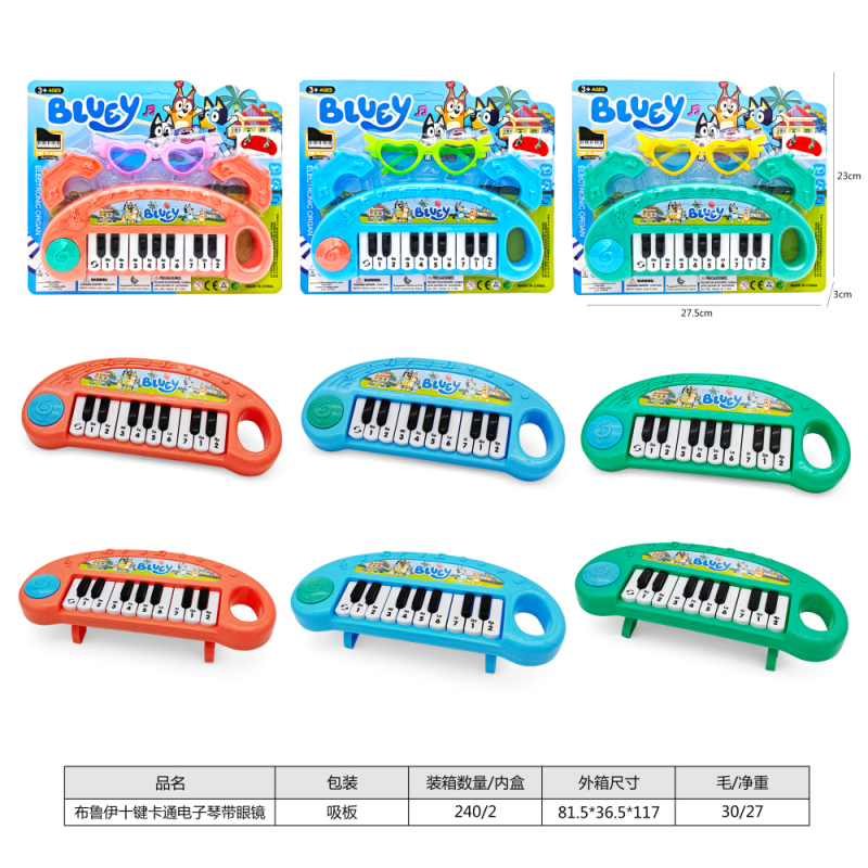 布鲁伊十键卡通电子琴带眼镜,3色混装 |