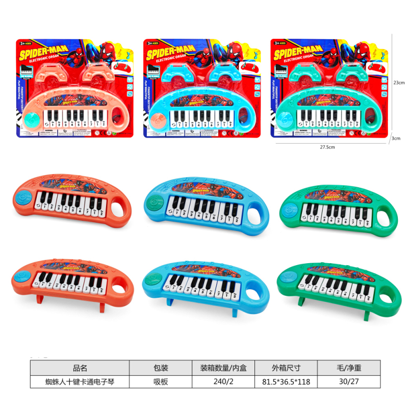 蜘蛛人十键卡通电子琴,3色混装 |