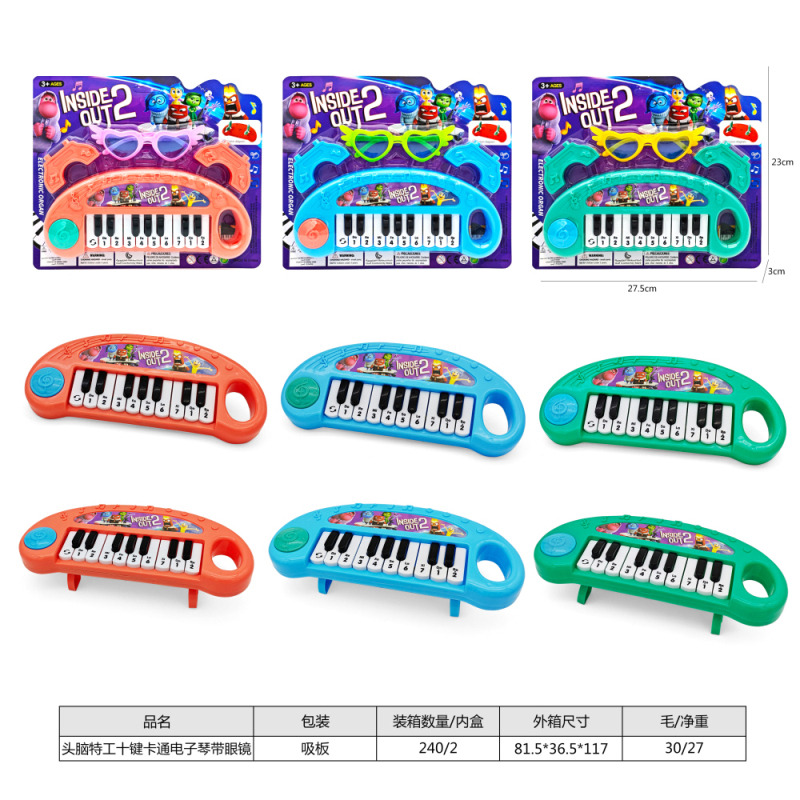 头脑特工十键卡通电子琴带眼镜,3色混装 |