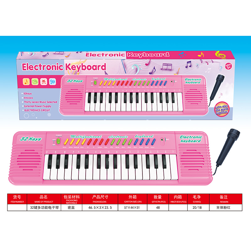 32键多功能粉色电子琴 (带麦克风) |