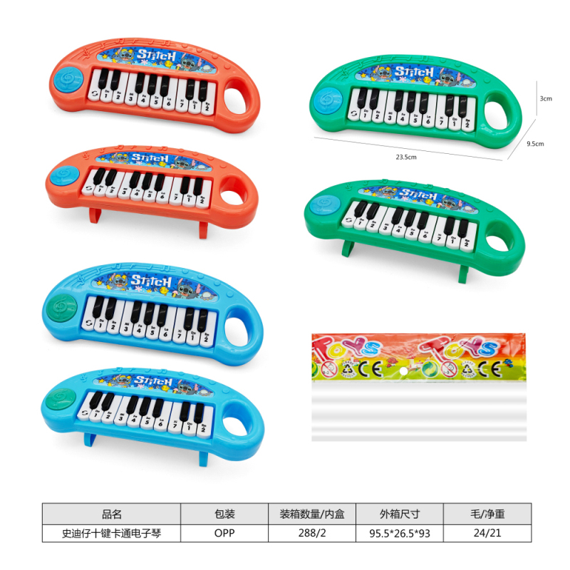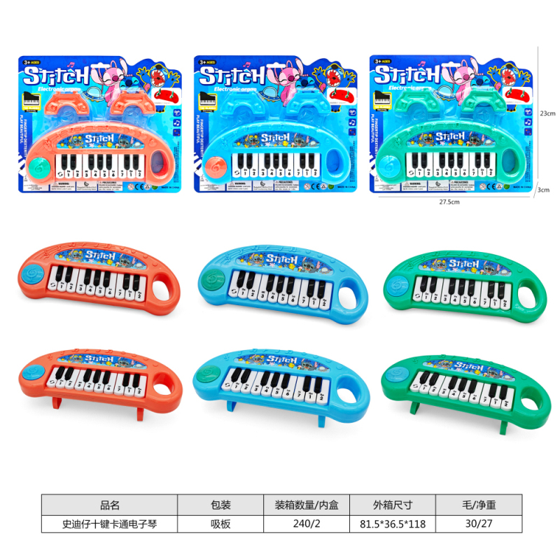 史迪仔十键卡通电子琴,3色混装 |