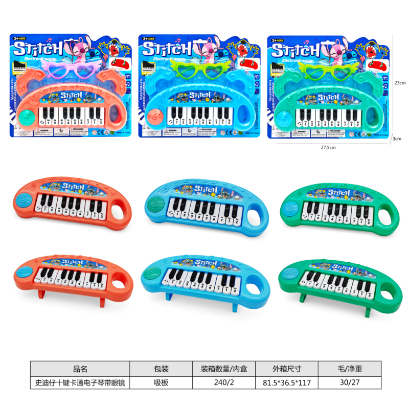 史迪仔十键卡通电子琴带眼镜,3色混装 |