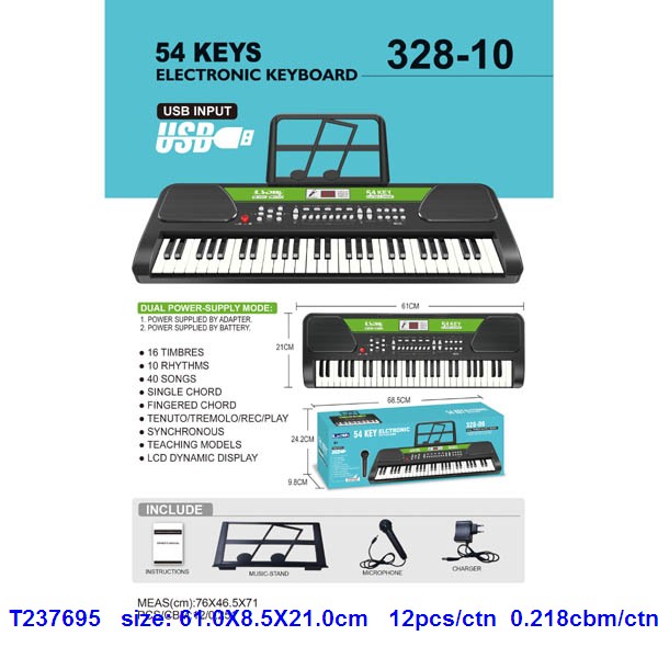 54键黑色电子琴,说明书、乐谱架、话筒、适配器,USB功能 |