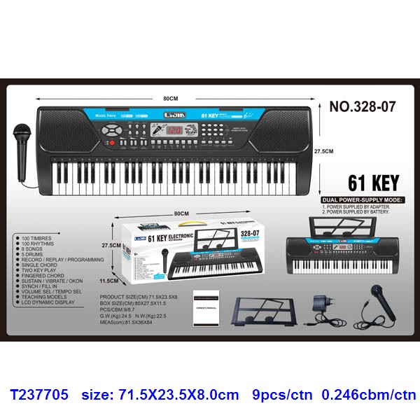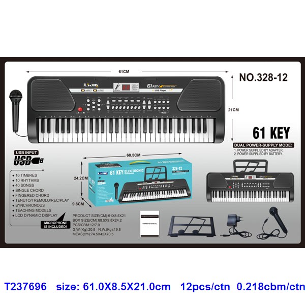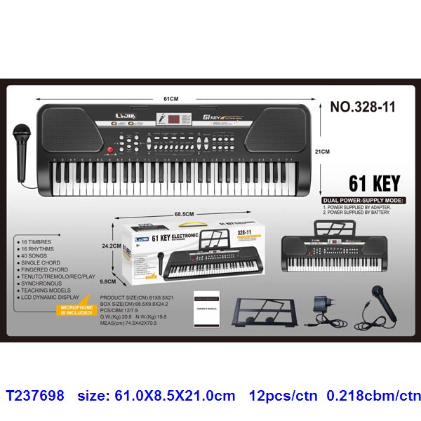 61键黑色电子琴,说明书、乐谱架、话筒、适配器 |