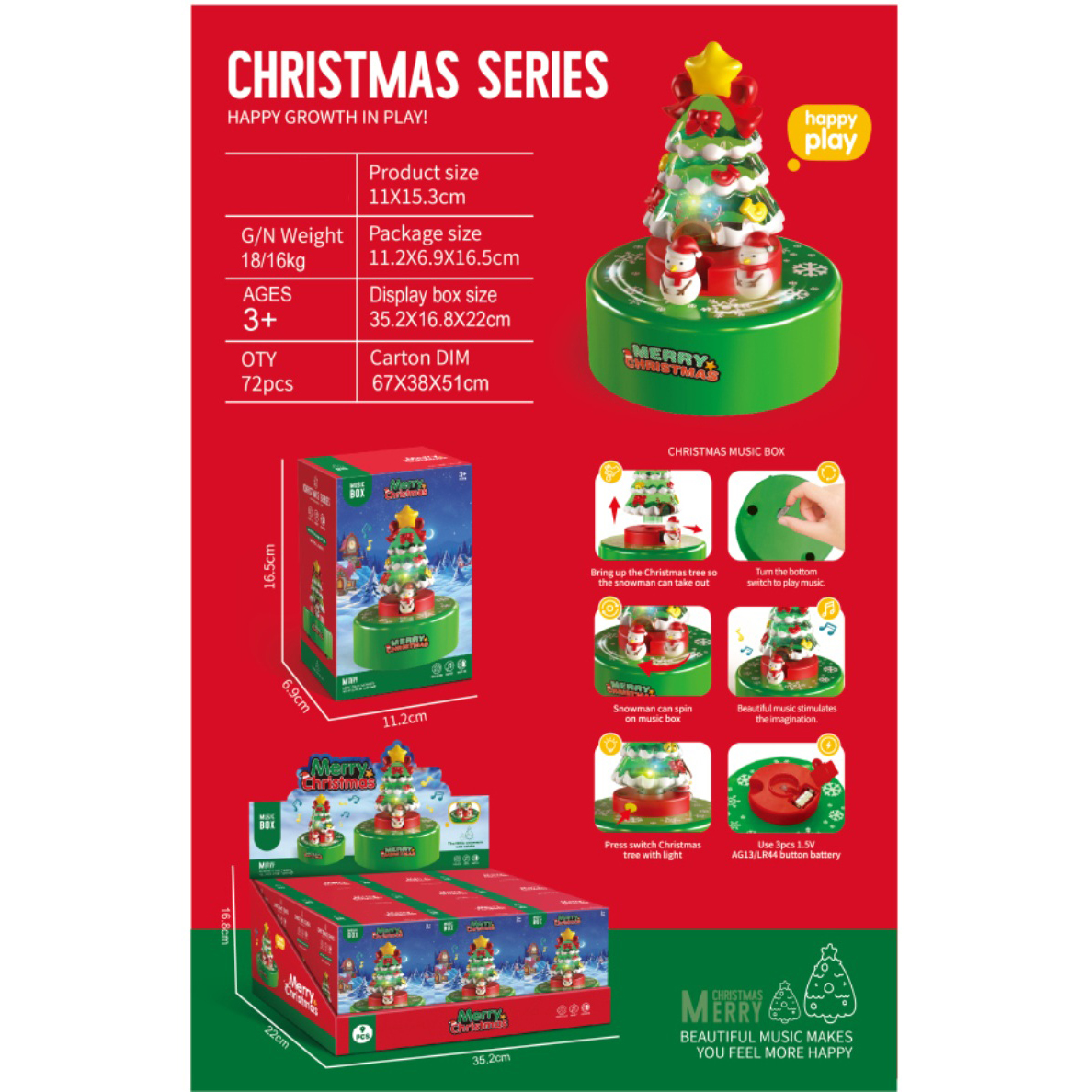 圣诞树音乐盒(带灯光.包电)9只/展示盒 |