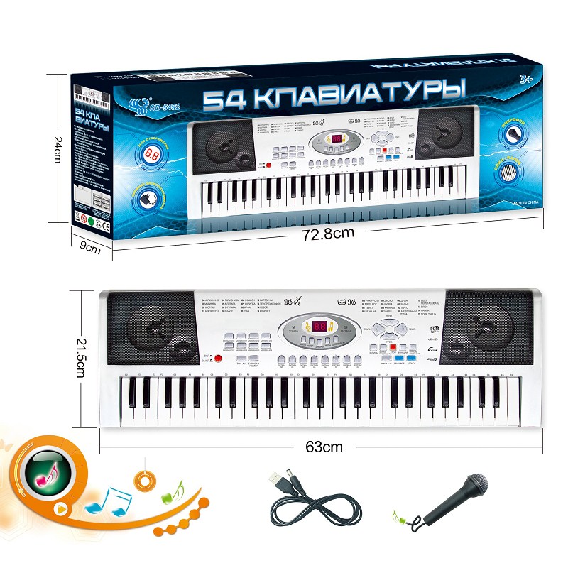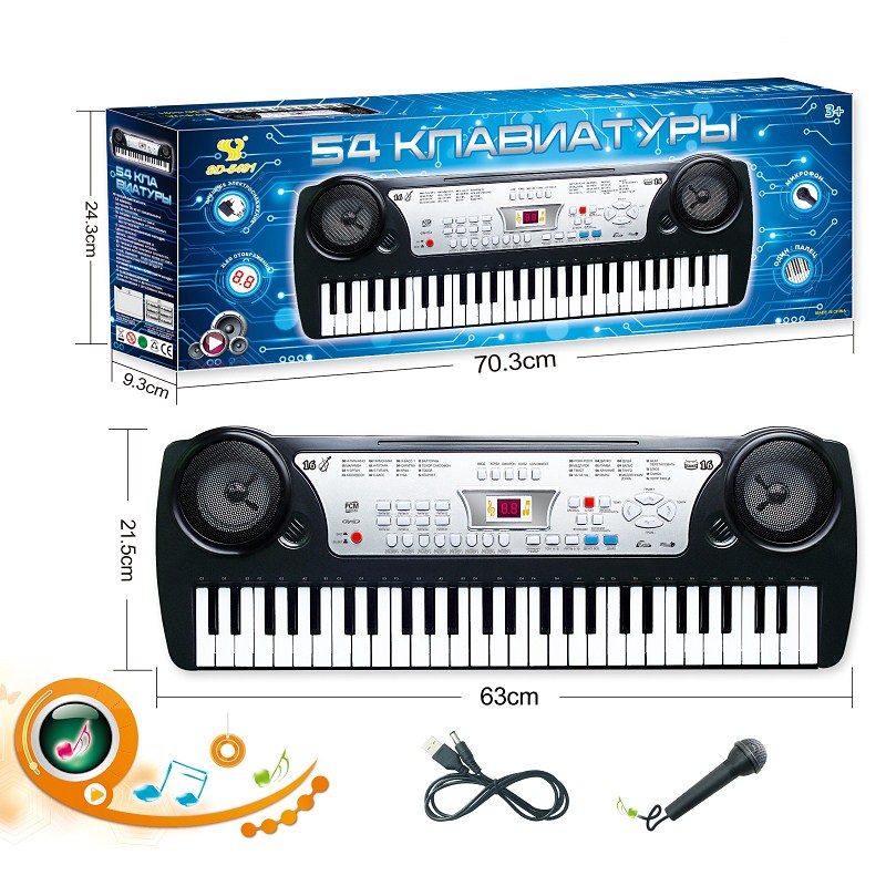 俄文54键多功能电子琴带USB连接线,数码,麦克风,铁网喇叭盖 |