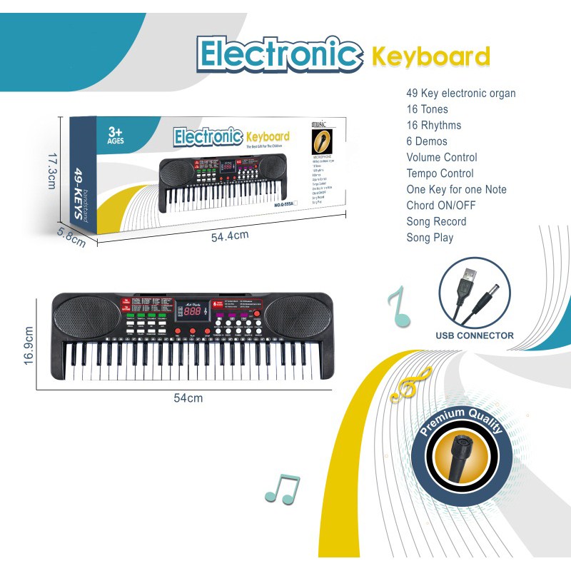 49键多功能电子琴带麦克风,USB接口连接线 |