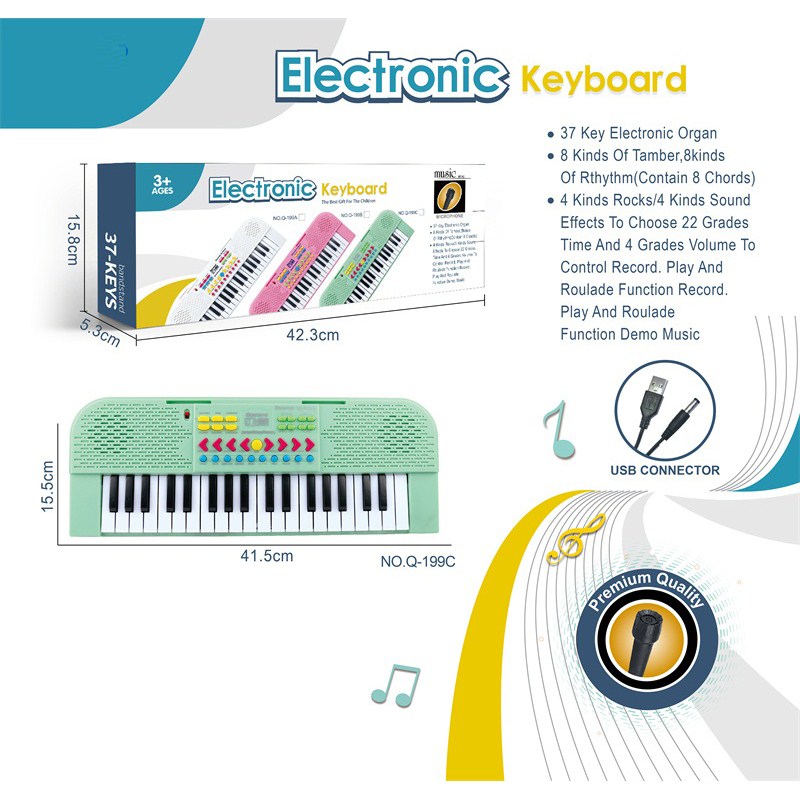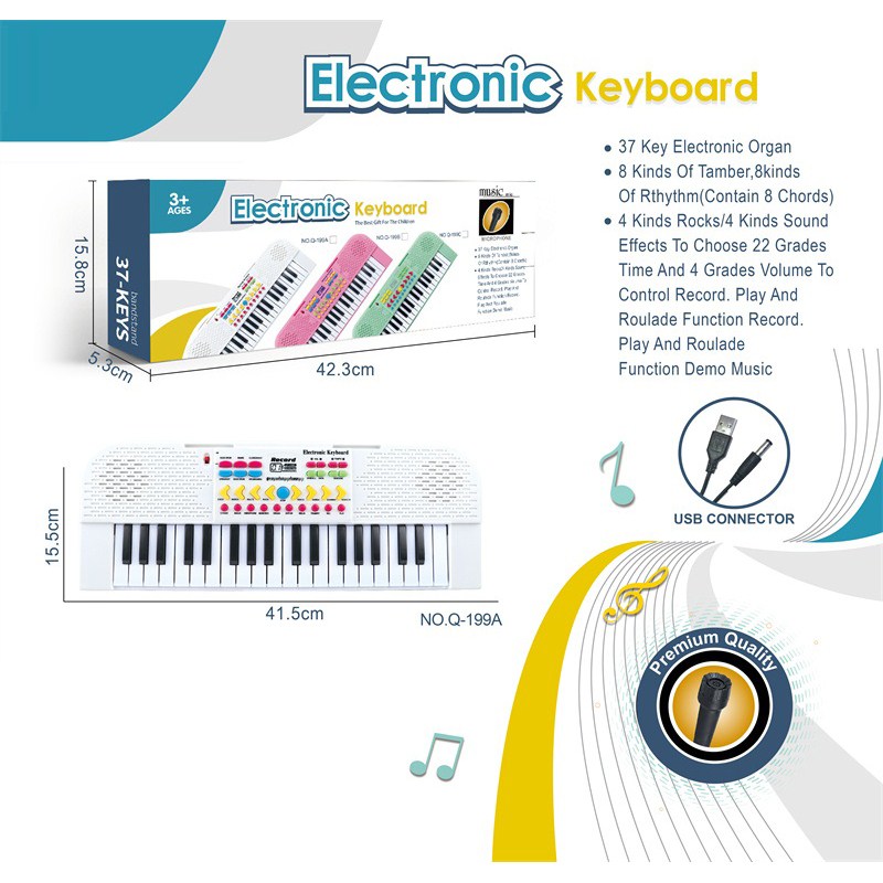 37键多功能电子琴带麦克风,USB接口连接线 |