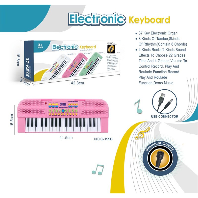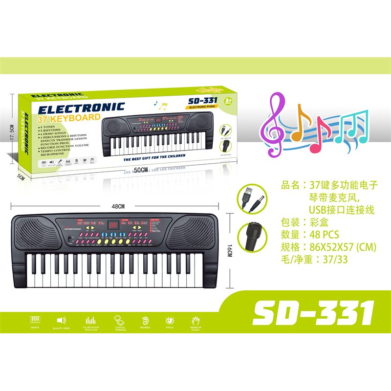 37键多功能电子琴带麦克风,USB接口连接线(黑色) |