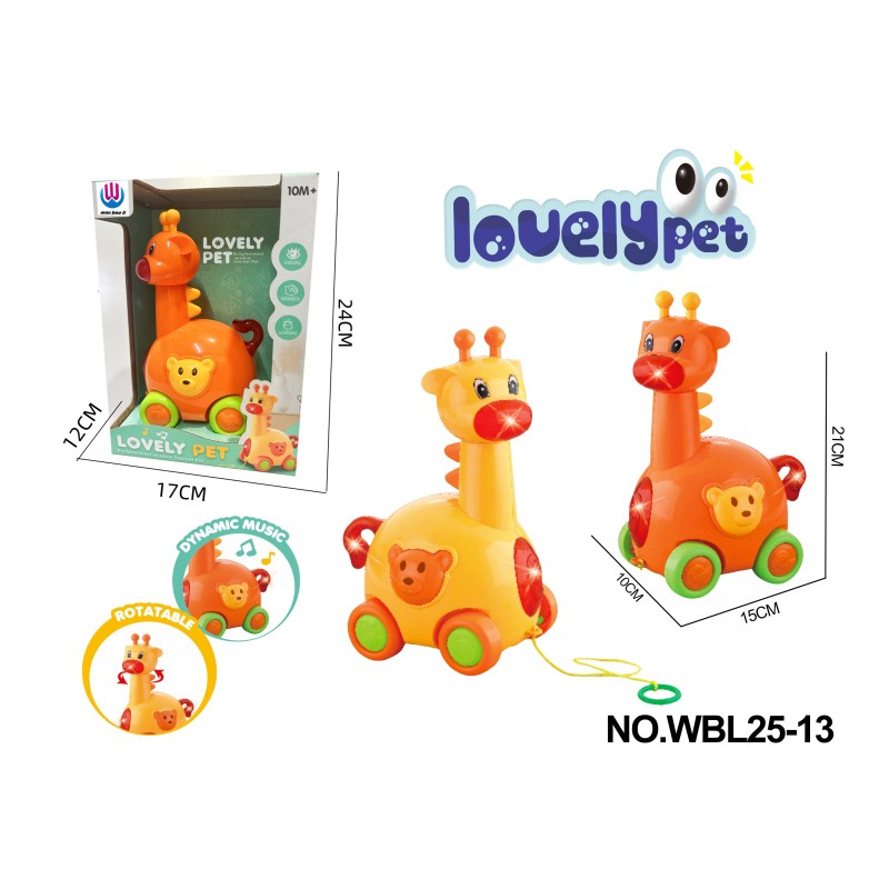 婴儿/儿童益智玩具拖拉长颈鹿(橙色/黄色)带灯光音乐(2*AA)不包电 |