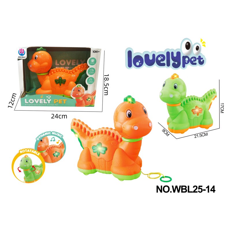 婴儿/儿童益智玩具拖拉恐龙(绿色/橙色)带灯光音乐(2*AA)不包电 |