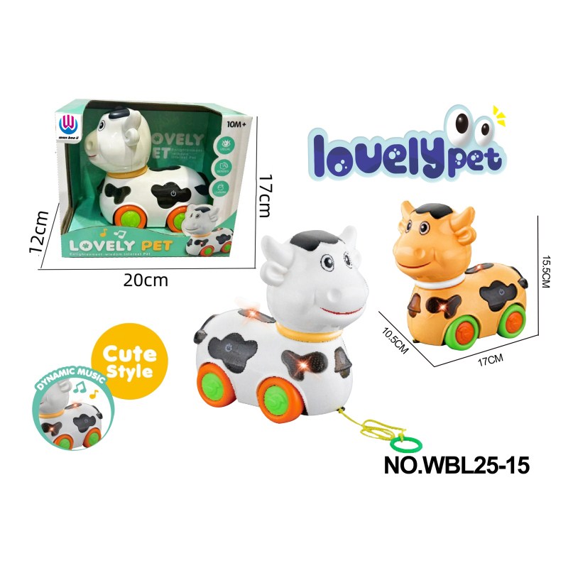 婴儿/儿童益智玩具拖拉奶牛(白色/橙黄色)带灯光音乐(2*AA)不包电 |