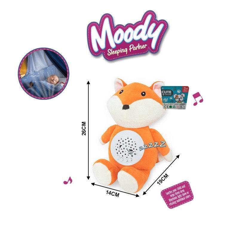 婴儿毛绒安抚公仔(狐狸)音乐,灯光投影无包 3粒AAA |