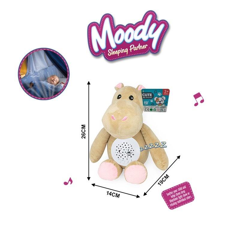 婴儿毛绒安抚公仔(河马)音乐,灯光投影无包 3粒AAA |