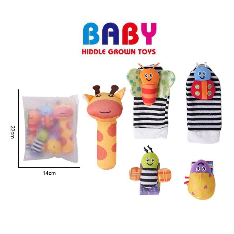 婴幼儿卡通蜜蜂蝴蝶手腕摇铃袜/手腕带/长颈鹿摇铃套装(5件套) |