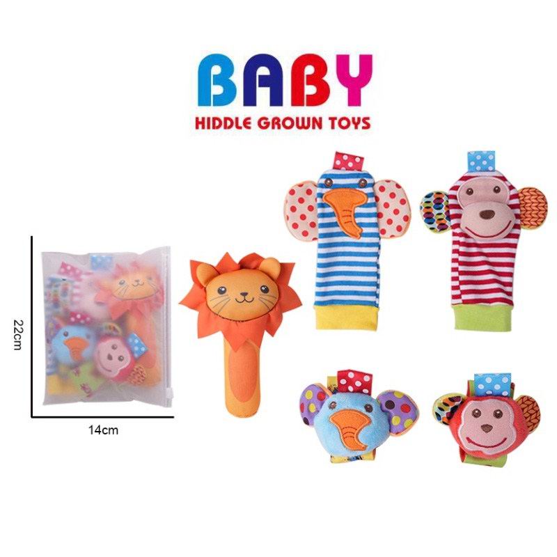 婴幼儿卡通猴子大象蝴蝶手腕摇铃袜/手腕带/狮子摇铃套装(5件套) |