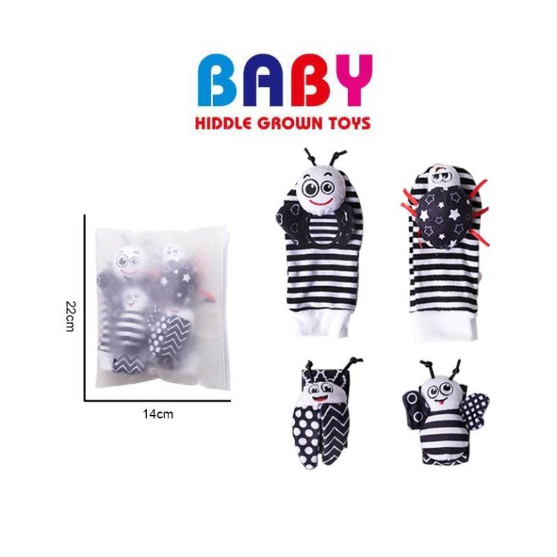 婴幼儿黑白蜜蜂蝴蝶手腕摇铃袜/手腕带套装(4件套) |