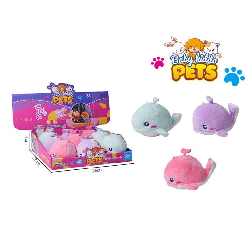 毛绒解压海洋动物公仔挂件--萌萌鲸鱼(蓝/紫/红3色9只) |