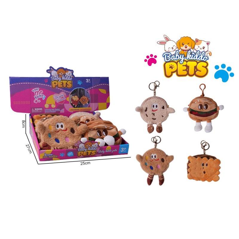 毛绒解压丑萌搞怪零钱包挂件--曲奇饼干/夹心饼干/汉堡包/西式点心(4款12只) |